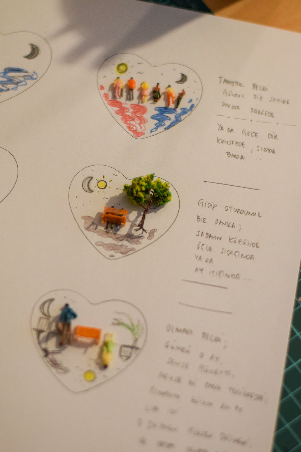 Bunun için yapmanız gereken siparişi oluştururken sipariş notu kısmına ya da e-posta olarak info@kiru-co.com adresine kalbin içerisinde nasıl bir kolaj istediğinizi anlatmak. Çok küçük bir alan olduğundan istediğiniz her detayı sığdırabilmemiz mümkün değil ama genel havayı yakalayabileceğimizi düşünüyoruz.