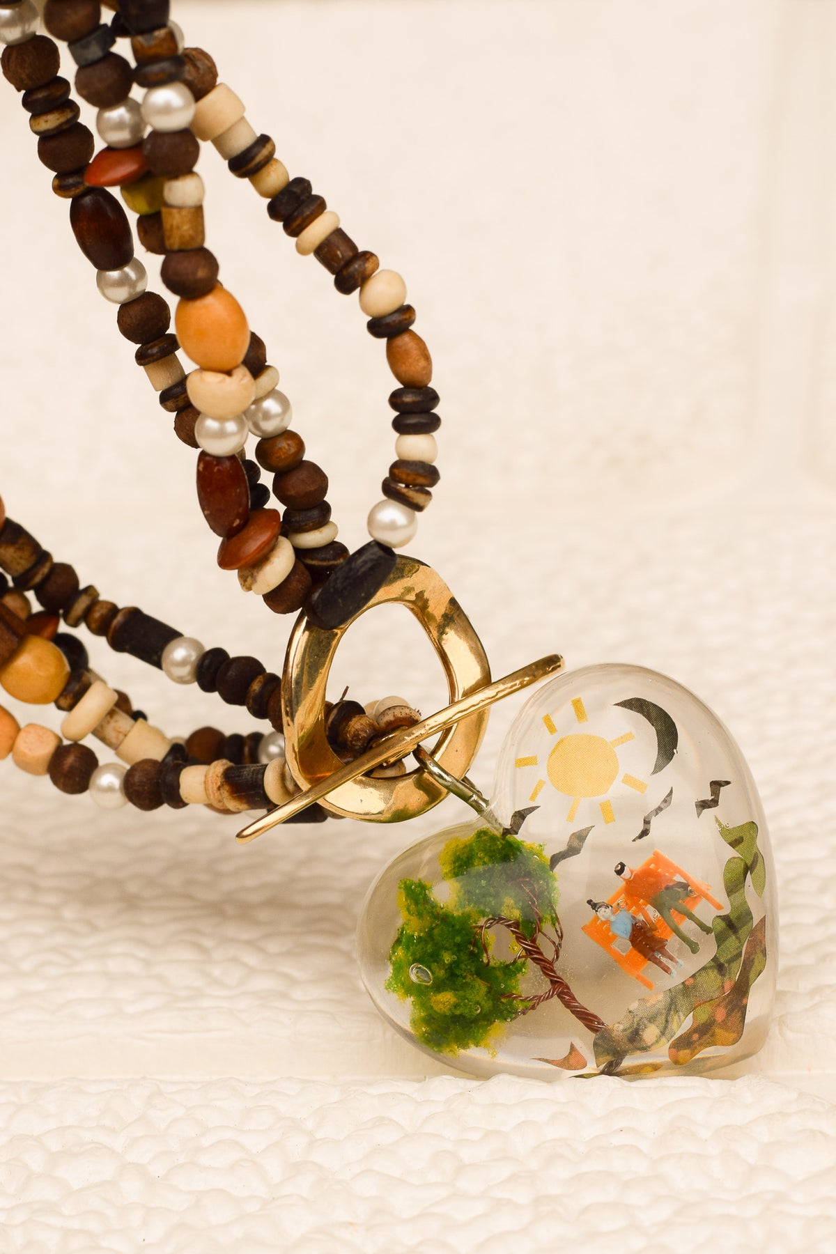 Materyal: Epoksi içi Kolaj, Metal, Ahşap Boncuk, Cam İnci.