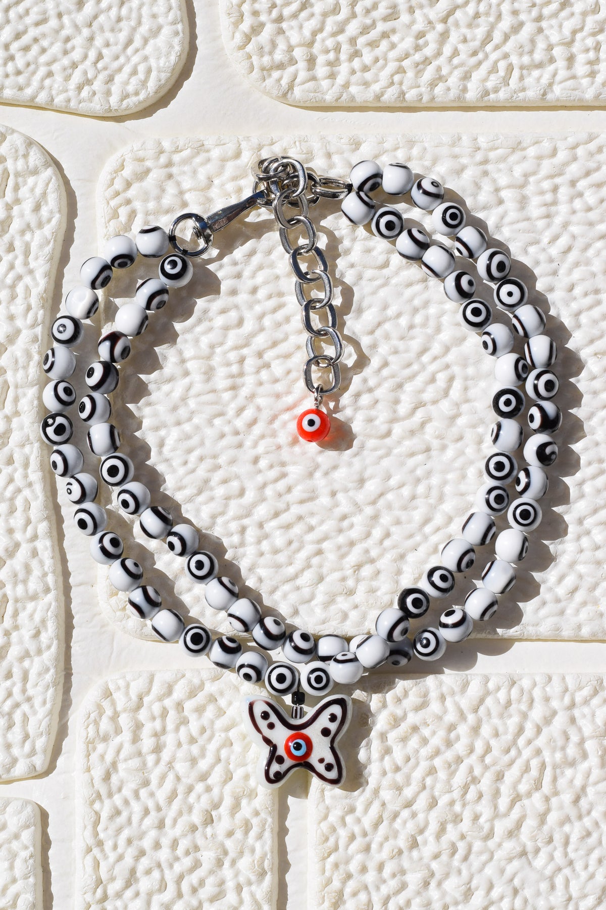 Malzeme: Cam Nazar Boncukları, Cam Kelebek Uç ve Metal