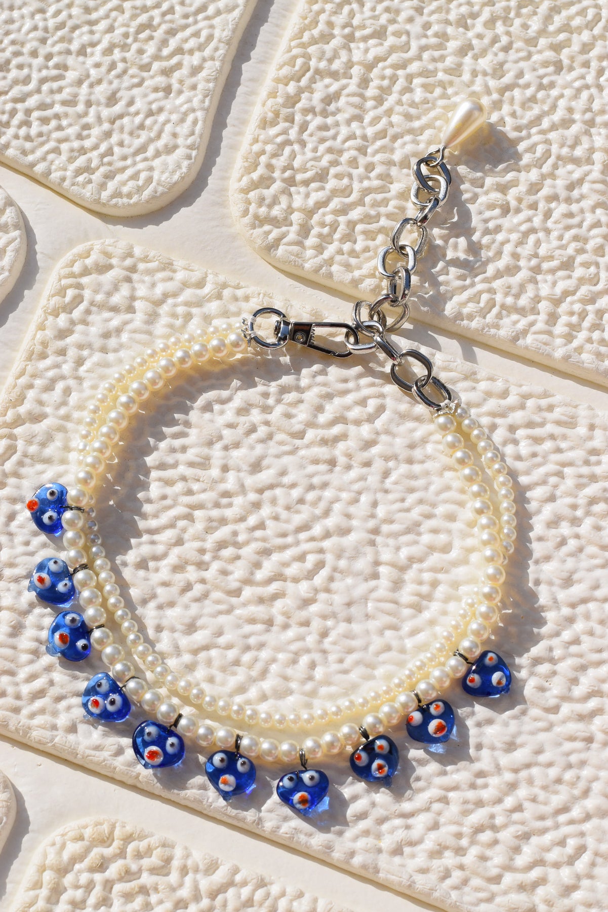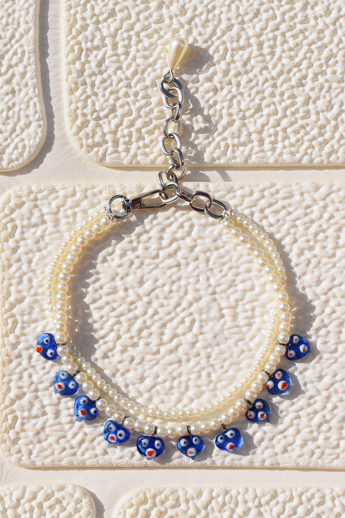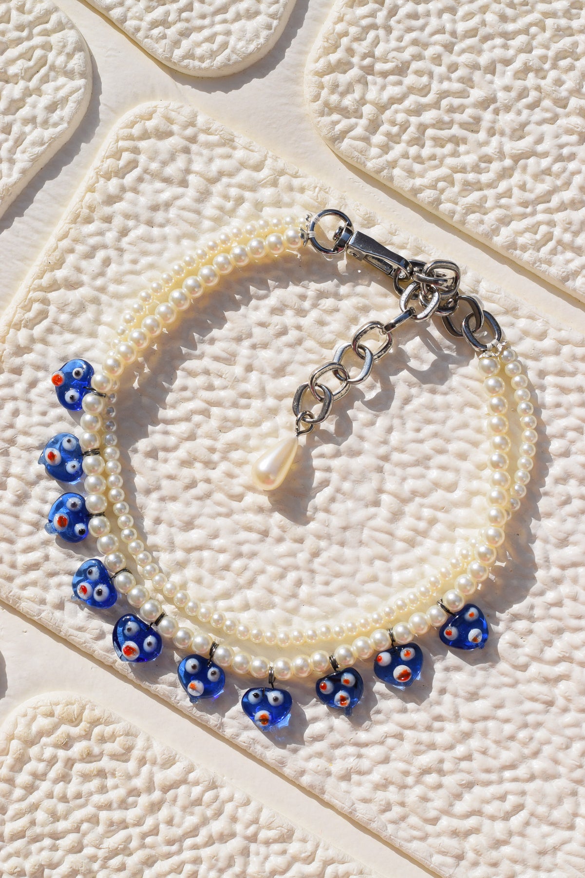 Malzeme: Cam inci, Kalp şeklinde cam nazar boncukları, Metal.
