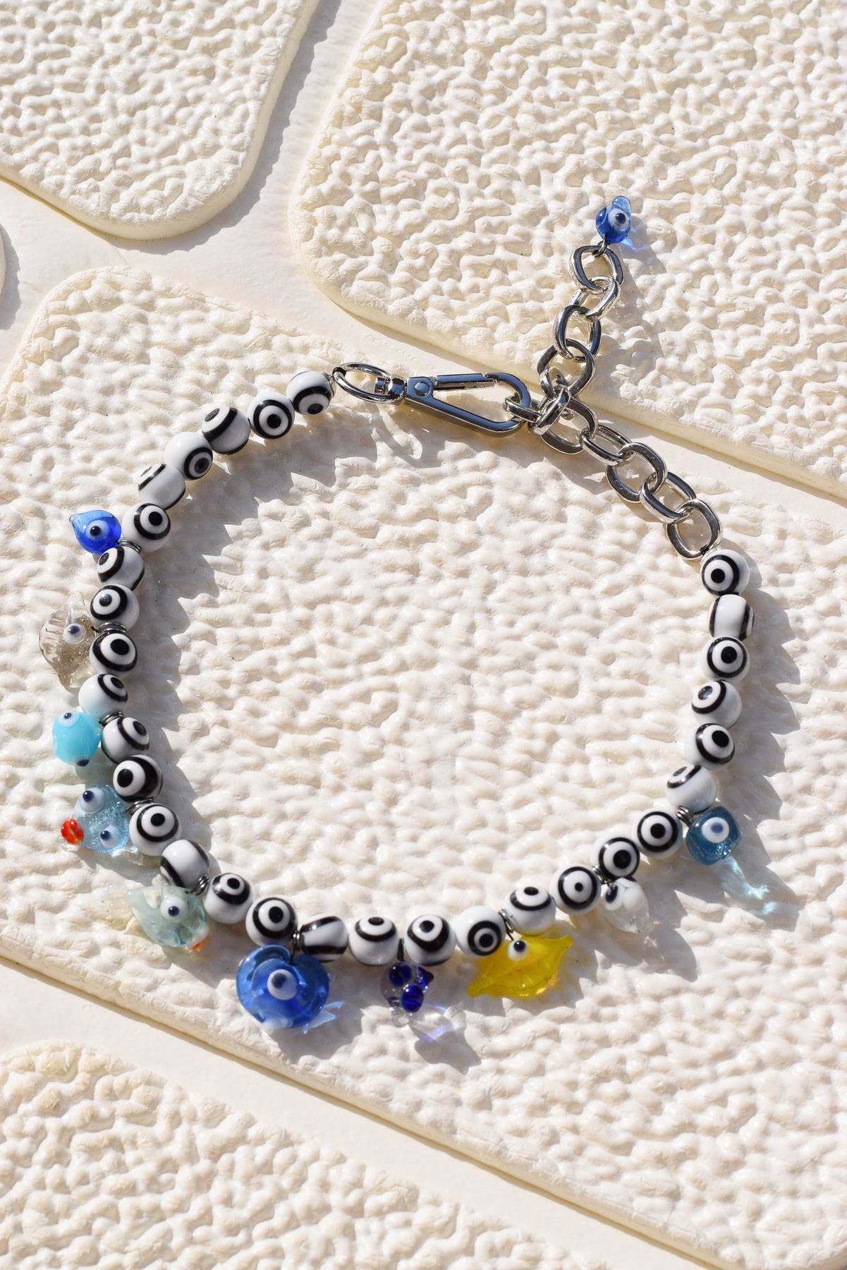 Malzeme: Cam Nazar Boncukları, çeşitli şekillerde cam nazar boncukları, Metal.