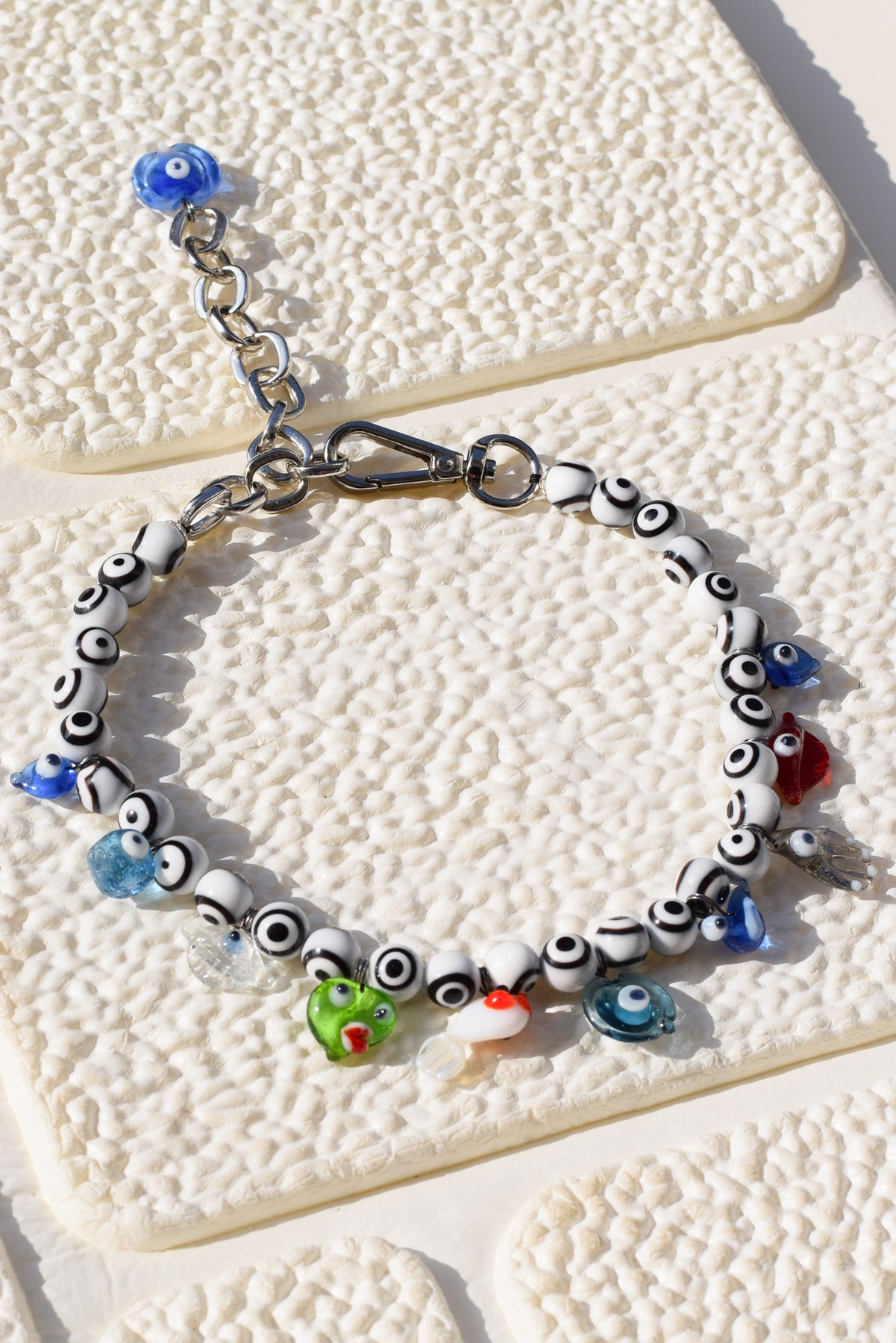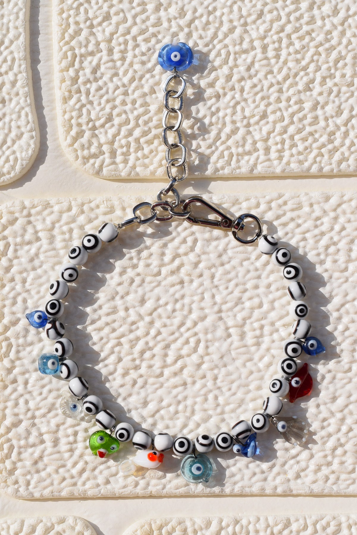 Malzeme: Cam Nazar Boncukları, çeşitli şekillerde cam nazar boncukları, Metal.