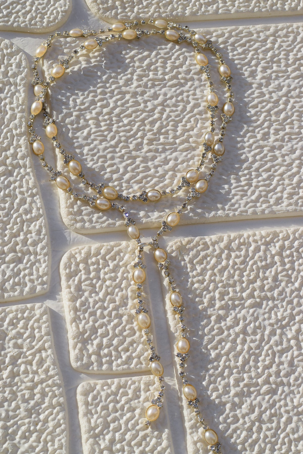 Malzeme: İnce metal zincir, Suni İnci ve Kristal